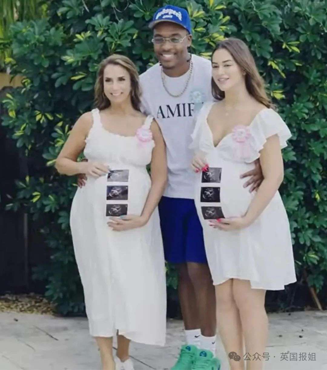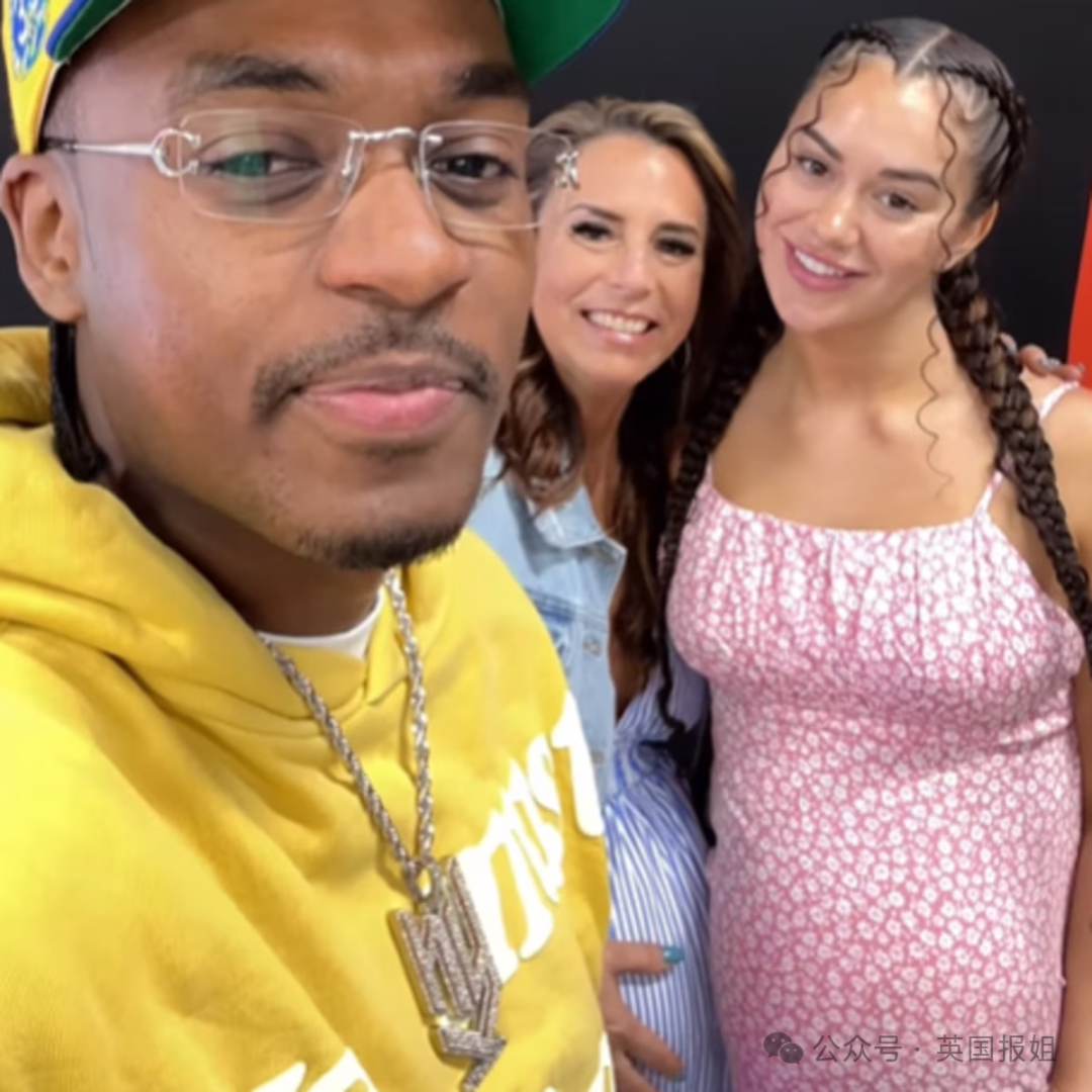 画面中,亚迪端坐在两人中间,杰德和丹妮穿着一模一样的孕妇装,看起来就像是一对亲密的姐妹……
