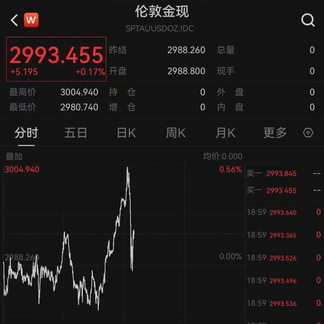 黄金上破3000美元/盎司