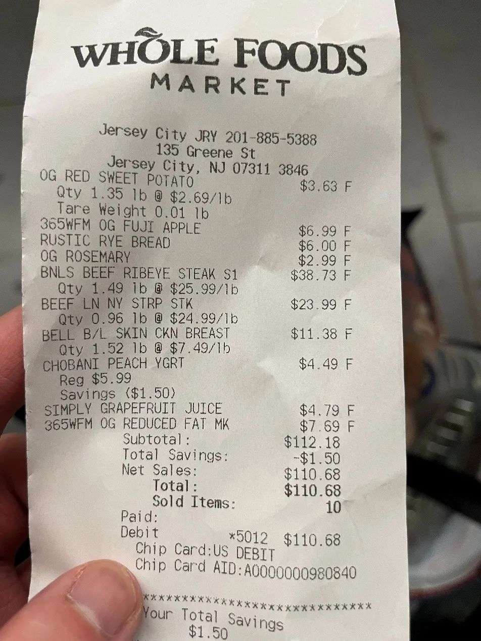此外,在纽约生活的雷先生也对记者表示,现在超市里鸡蛋和奶制品现在都很紧缺。他最近去了一次超市,想购买鸡蛋,但发现货架都是空的,另外,想要的黄油也没货。雷先生还给每经记者展示了他的消费小票,并表示这大概就是他一周食物储备需要花的价格(110.68美元)。