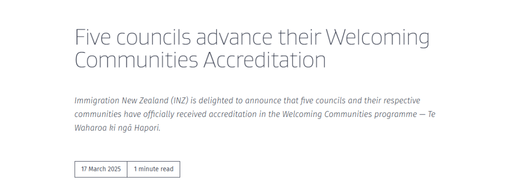此外,新西兰移民局今日宣布,又有五个新西兰城市通过“友好社区”认证(Welcoming Communities Accreditation)!