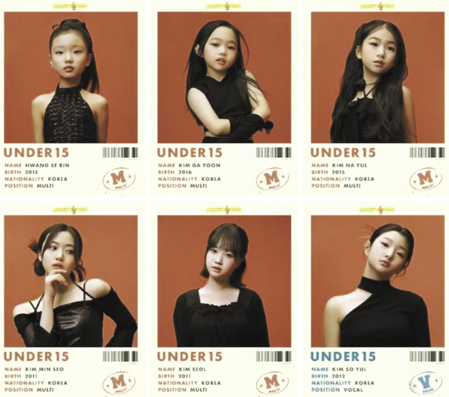 报道称,《UNDER15》用“发掘15周岁以下K-POP(韩流)神童,实现新老交替的选秀”的说词,对该节目进行了预告。预告中称,不论种族和国籍,从全世界选拔的59名15岁以下少女,将用外貌、表演、唱功兼备的六边形魅力书写K-POP新历史。该节目的制作人表示:“目标是打造一个平均出道年龄比NewJeans(16.4岁)更低的组合。”然而,那些利用孩子们赚钱的成年人们(制作组)的意图,从一开始就被打上了问号。