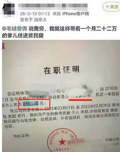 网友顺藤摸瓜,发现这位自称“眼眸”的用户,曾在社交平台炫耀自己家世显赫,甚至晒出一张“某互联网巨头公司副总裁在职证明”,直接晒出材料:
