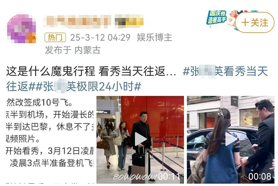 韩国女星张某英在巴黎时装周参加活动,粉丝在社交媒体感叹偶像行程紧凑,直呼“魔鬼行程”,心疼偶像休息不足。
