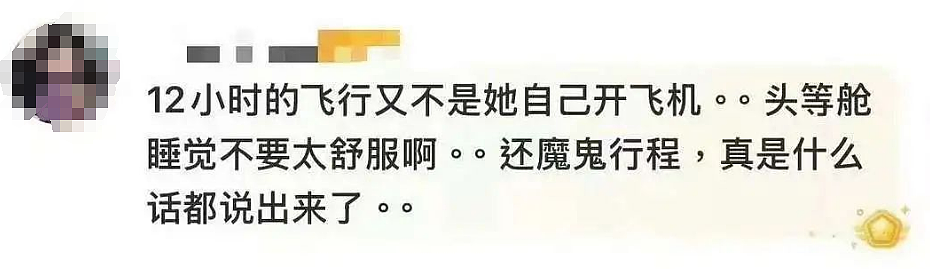 “她又不是自己开飞机,头等舱睡觉,算不上魔鬼行程吧?”