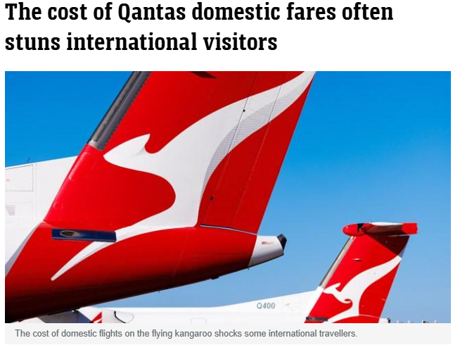 我们的航空业缺乏竞争,澳洲航空在商务旅行市场占据主导地位,商务旅客很乐意支付高昂的机票费用去参加会议等。