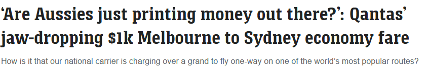 https://www.news.com.au/travel/travel-advice/flights/are-aussies-just-printing-money-out-there-qantas-jawdropping-1k-syd-melb-economy-fare/news-story/543ee7f39b6bd9e01e15292606d3c7ab