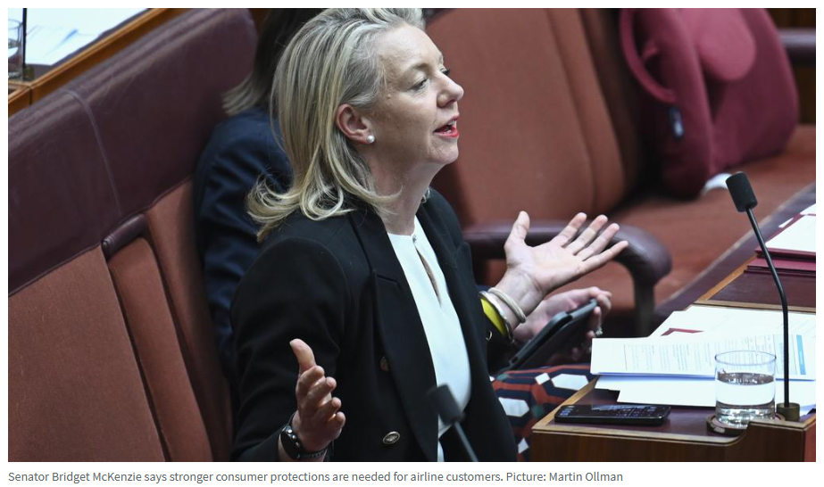 国民党参议员Bridget McKenzie因此直接质问澳航: