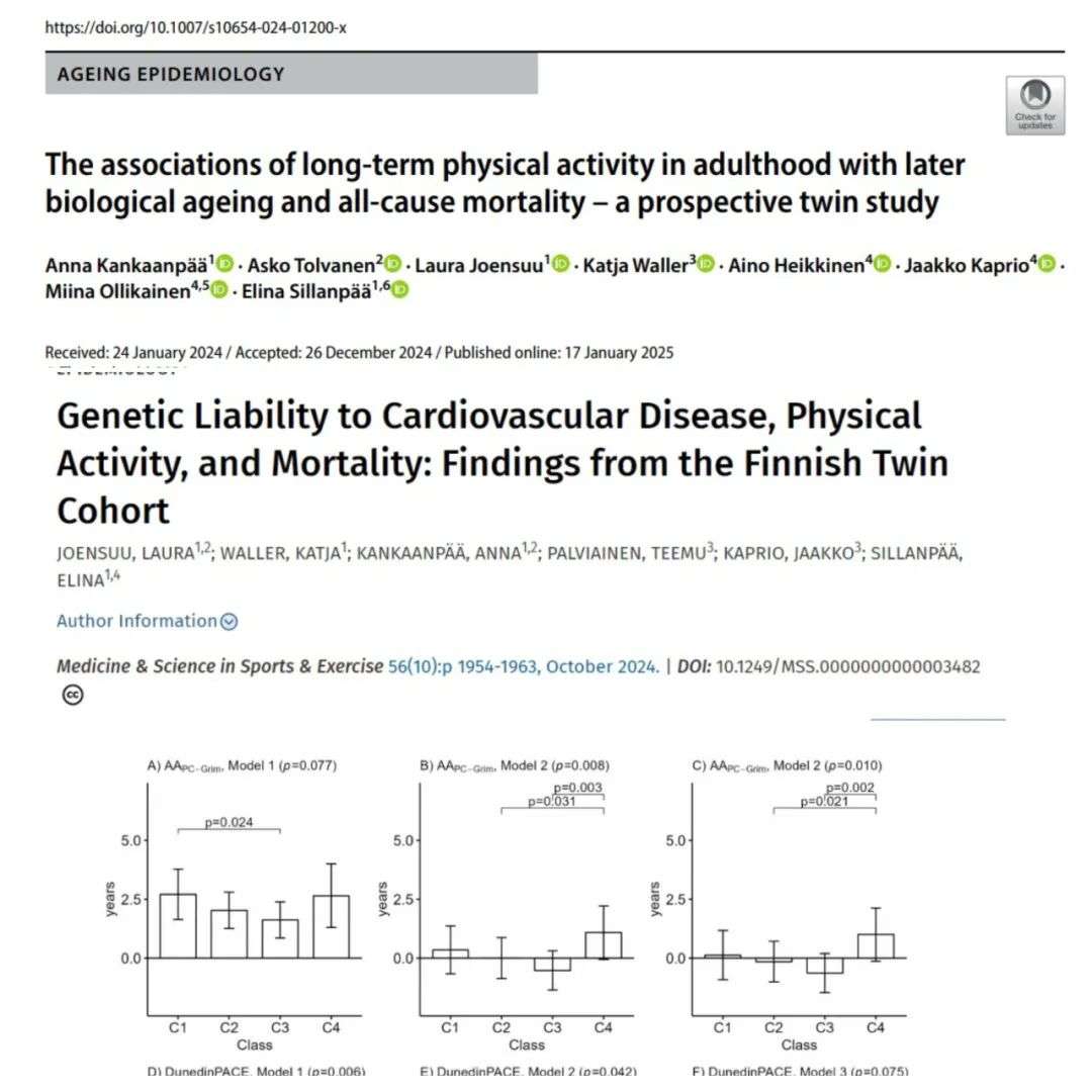这项历时三十年的研究,发表在《欧洲流行病学杂志》上,彻底颠覆了我们对锻炼的传统认知。研究选取了22750位芬兰老年双胞胎作为样本,追踪他们的全因死亡数据,直到2020年。结果发现,在没有心血管疾病史等混杂因素的情况下,两类人群的生物衰老速度较快:一类是久坐不动的“沙发土豆”,另一类则是过量运动的“健身狂魔”。