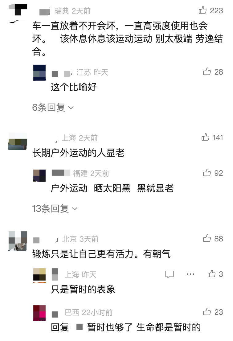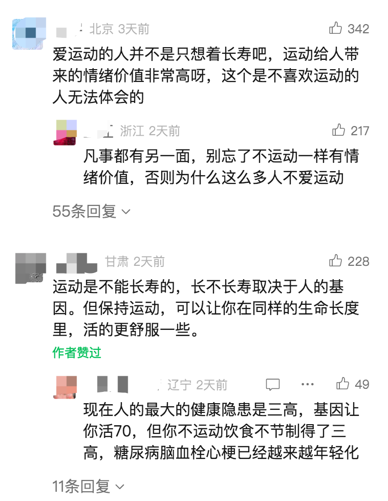 对此,网友们纷纷表示,很多人运动不仅仅是为了长寿,更是为了保持健康的体魄和高质量的生活。毕竟,谁不想拥有一个充满活力的身体呢?