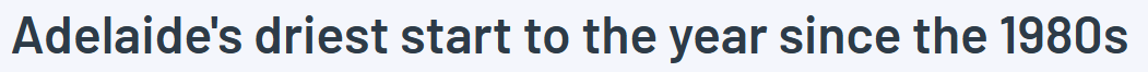 秋高气爽之际,阿德莱德持续遭遇早年干旱,这是自上世纪80年代那个以干旱闻名的十年以来从未见过的。2025年1月1日至4月15日早晨,主要气象站仅记录到14.4毫米的降雨量。