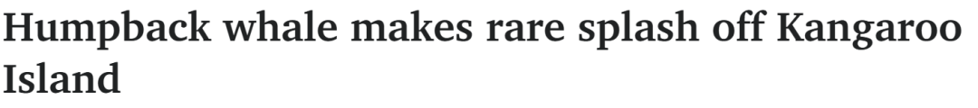 原文https://www.adelaidenow.com.au/news/south-australia/humpback-whale-makes-rare-splash-off-kangaroo-island/news-story/c34a53a55b29e038e6640de670a821e4