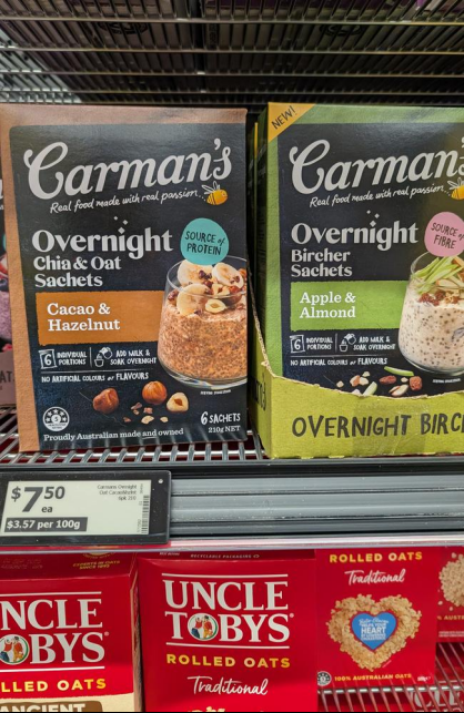 这类燕麦添加了大豆蛋白脆片和分离蛋白,价格高达 8 澳元。
