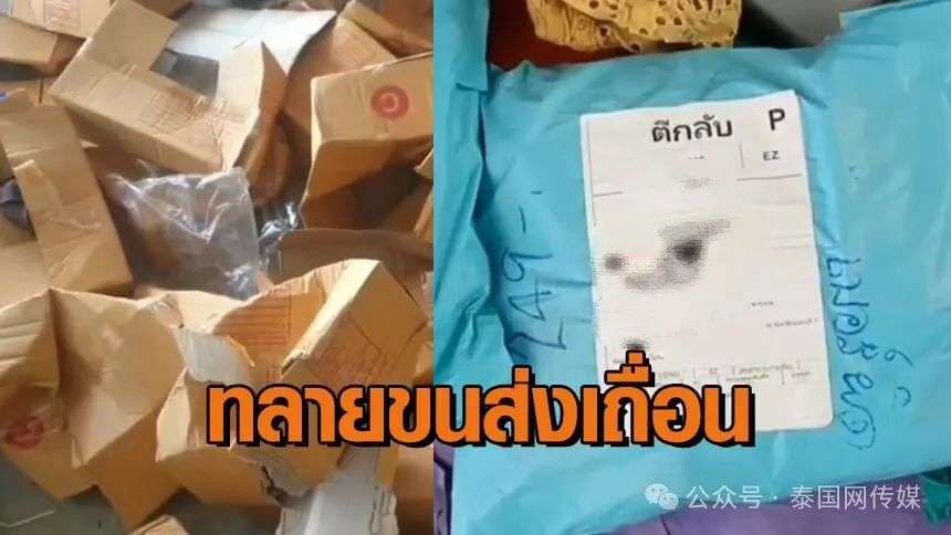 他们通过印有“J&T”标志的包裹箱,将未经订购的廉价商品寄给泰国民众,并要求货到付款。