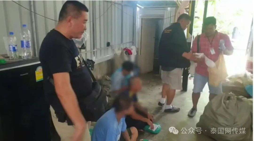 此次行动还查获三名缅甸籍非法外劳,正在现场打包。