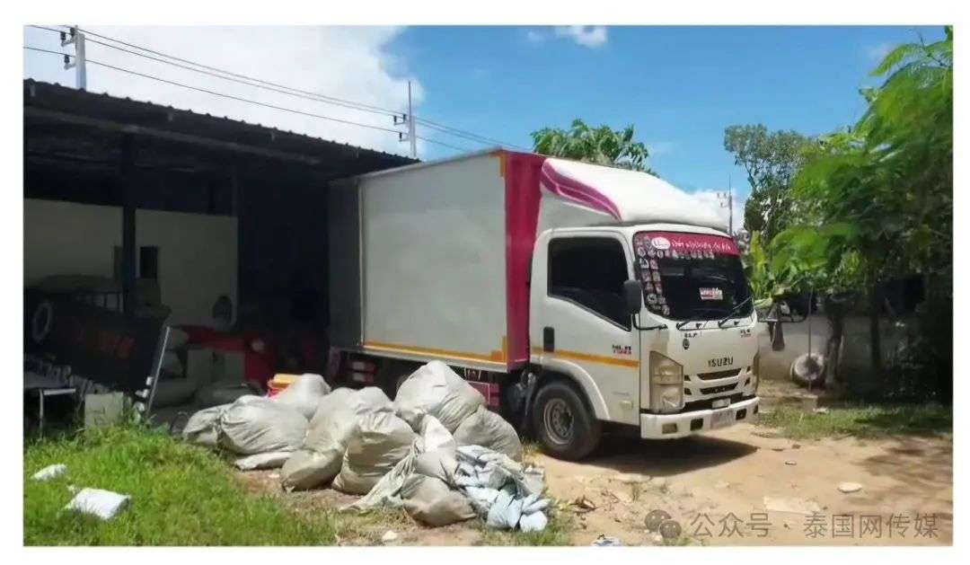 在仓库后方,执法人员还发现一辆密封式6轮卡车,车身贴有某公司标志。驾驶员为一名32岁的男子,名叫布玛(Boonma),来自乌汶府。
