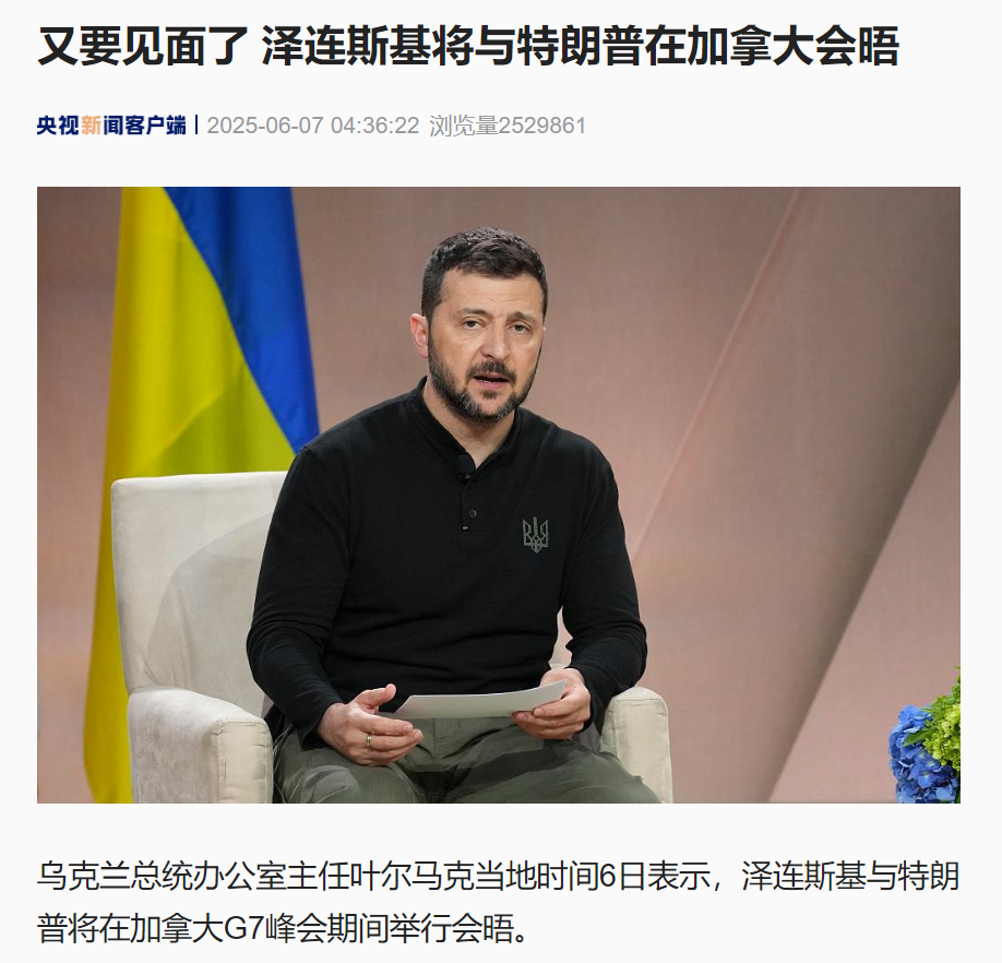 乌克兰总统办公室主任叶尔马克当地时间6日表示,泽连斯基与特朗普将在加拿大G7峰会期间举行会晤。