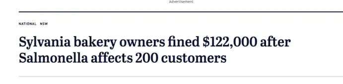 在悉尼售卖面包的店主曾因为面包原料里含有沙门氏菌,而感染了近200名顾客,被罚了12万的巨款!