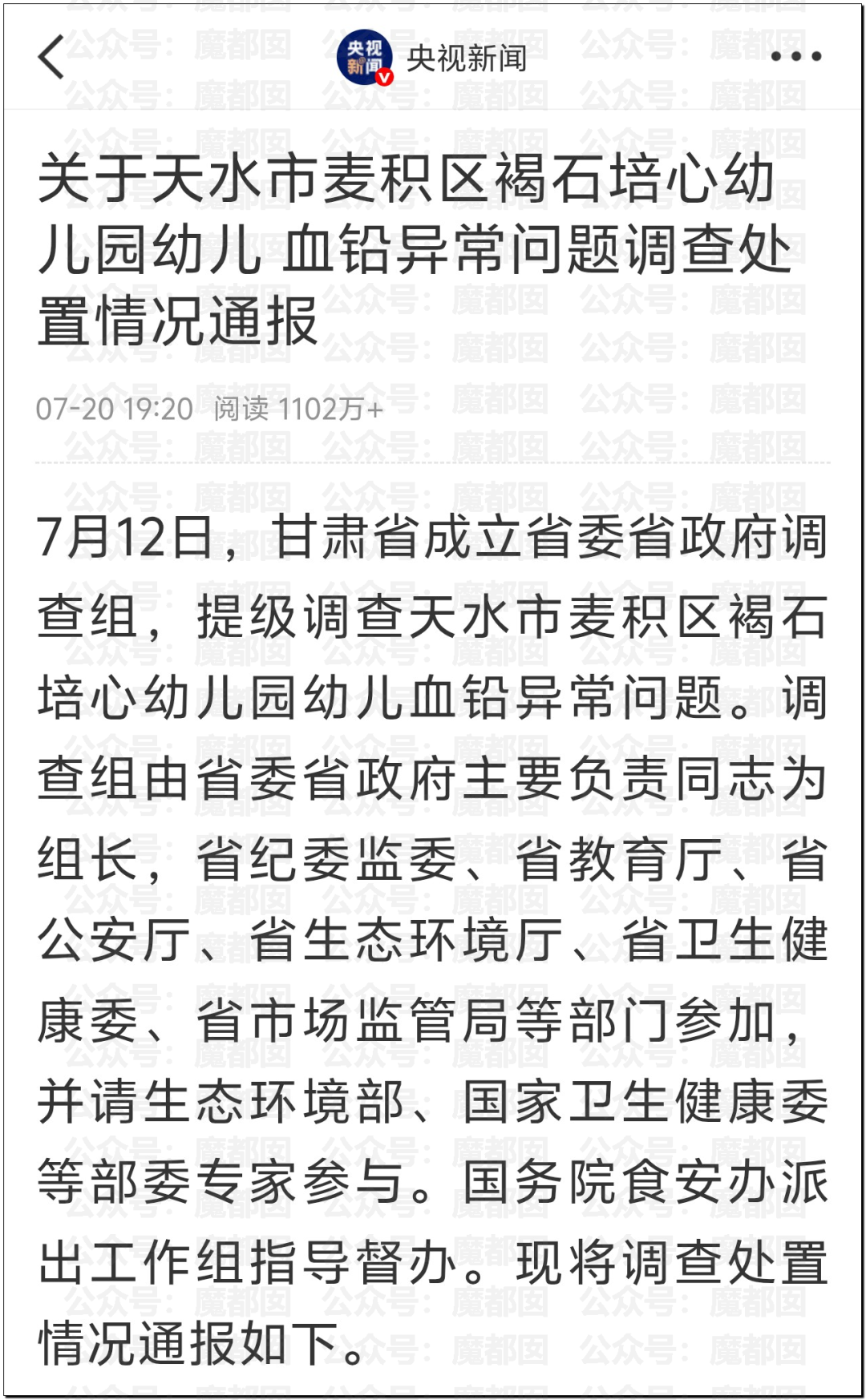 收藏全网震怒!甘肃幼儿园超200学童集体中铅毒,检测医院违规修改血铅数据!实锤通报!