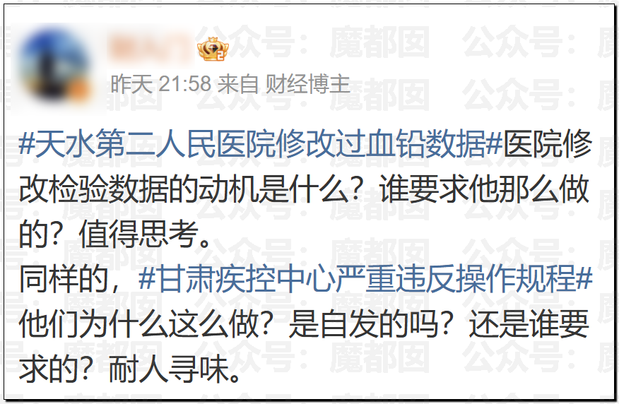 医院和疾控同时出问题的概率有多大?通报显示的确是修改数据,但是通报里没有写为何医院要修改数据,为何疾控的操作如此魔幻,不少大V和网友都提出了这个问题: