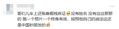 还有网友表示,这人的残疾证还是中国颁发的,“终身有效”。
