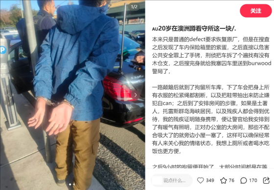 而之后,便开始了为时9小时的拘留,包括配合写笔录、定起诉罪名、审讯等程序,这名华人男子表示,虽然问了一些蛮有攻击性的问题,但自己没做坏事,所以正常回答问题就好。