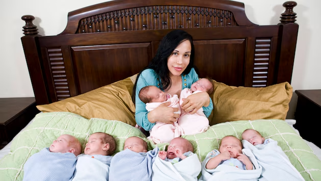 作为单亲妈妈,娜塔莉曾利用人工手段陆续生下6个娃。之后又用同样方法一次性生下8胞胎,震惊全美。