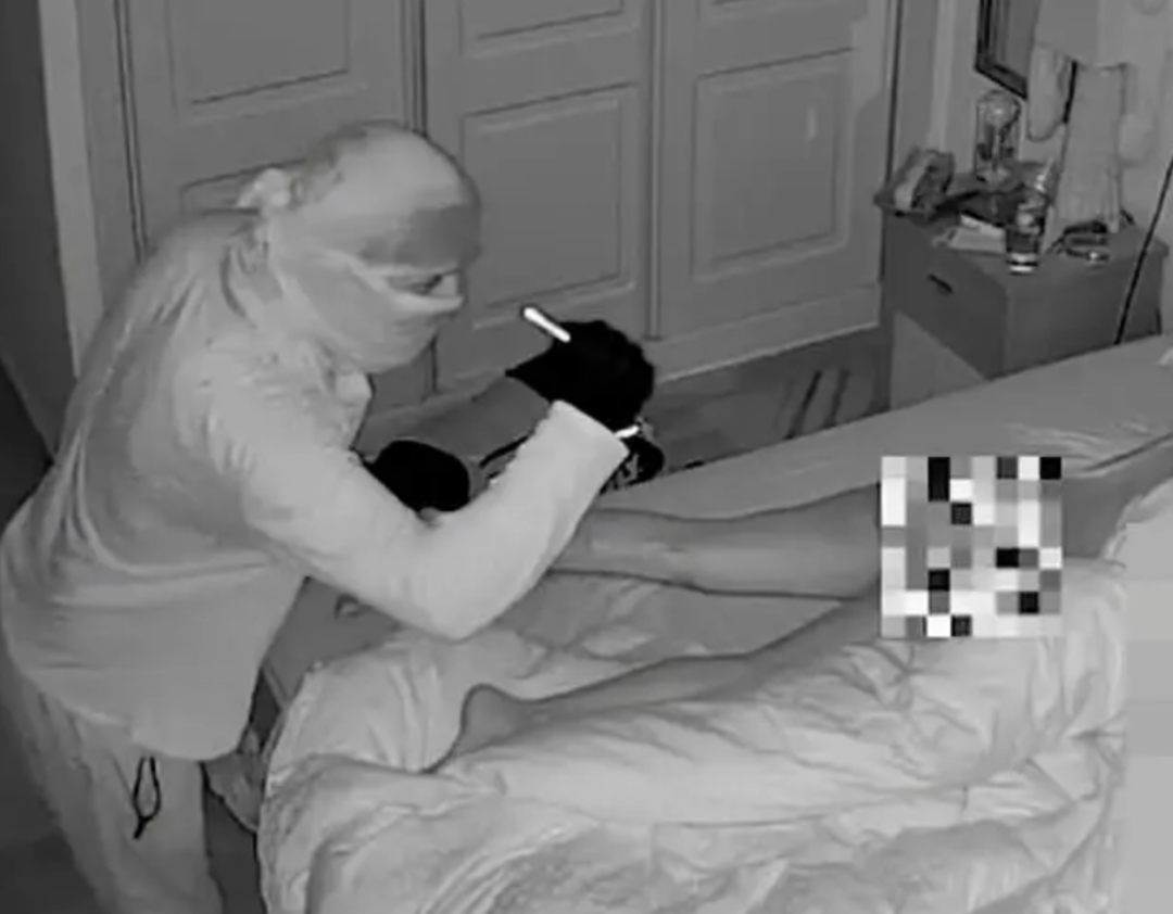 监控记录显示,盗贼反复进入这对夫妇的卧室多达八次,每次都手持手电筒,光束仔细扫过她的身体,俯身凝视熟睡的Pilar。