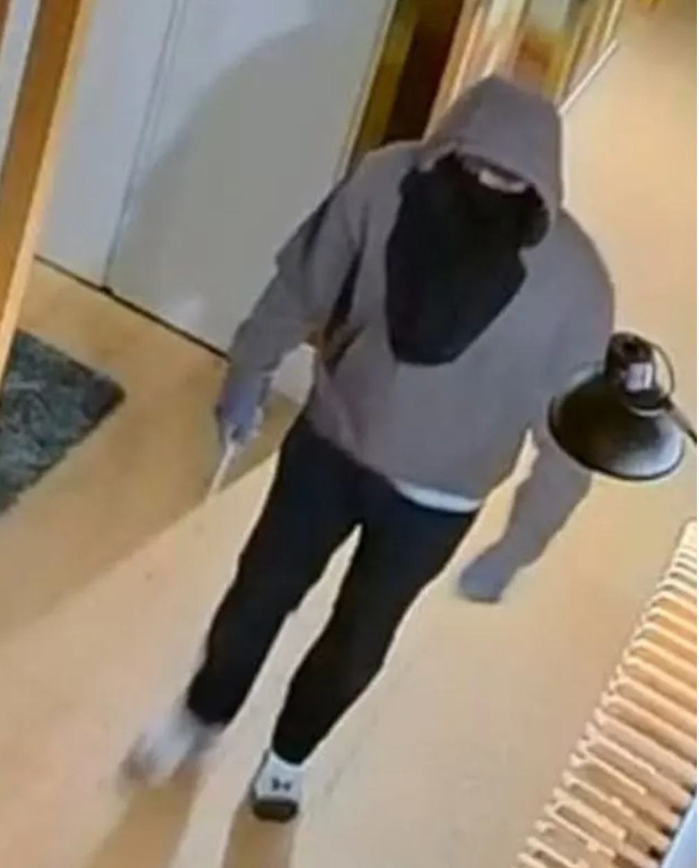 令人不寒而栗的是,这名“窃贼”似乎并未急于抢夺财物:只见他身着深色连帽衫,蒙面遮挡面容,脚上没有鞋、只穿袜子,显然是为了尽量不制造任何声响;