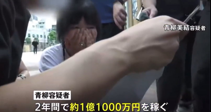 据警方公布的信息,有一名嫌疑人(即下图双手遮住脸颊的女生)在过去两年间靠这一方式敛财约1亿1000万日元,全部挥霍在歌舞伎町的某些高级牛郎俱乐部中和赌博上。