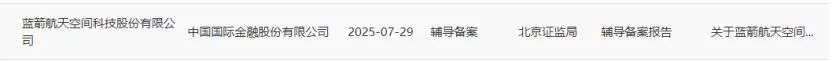 7月30日,证监会官网信息显示,蓝箭航天已启动上市辅导,拟在科创板上市,由中金公司担任辅导机构。