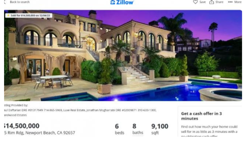 此外,他在尔湾的58 Boulder View和新港海滩的15 Rim Ridge同样属于家族资产。