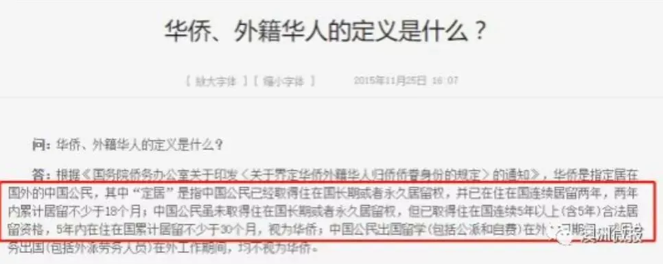 按照侨务办的定义,“定居海外的华侨”是有标准的: