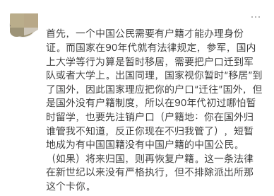 可问题是,中国的PR持有人有千千万,有人每年回国,有人两边居住,有人甚至一半时间都在国内生活。如果一刀切当成“出国定居”,那岂不是成千上万人的户籍要被注销?!