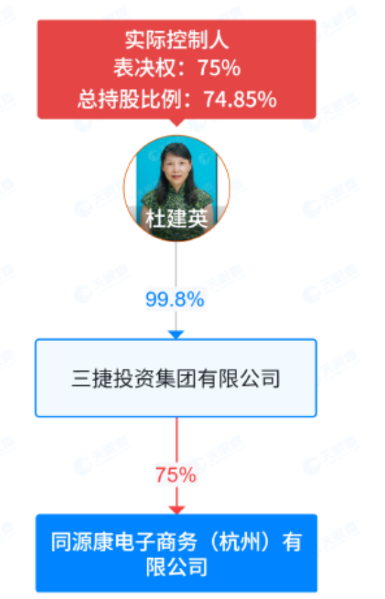 股东构成也挺有意思:大头75%在三捷投资集团手里。而三捷的实控人是谁?正是杜建英。