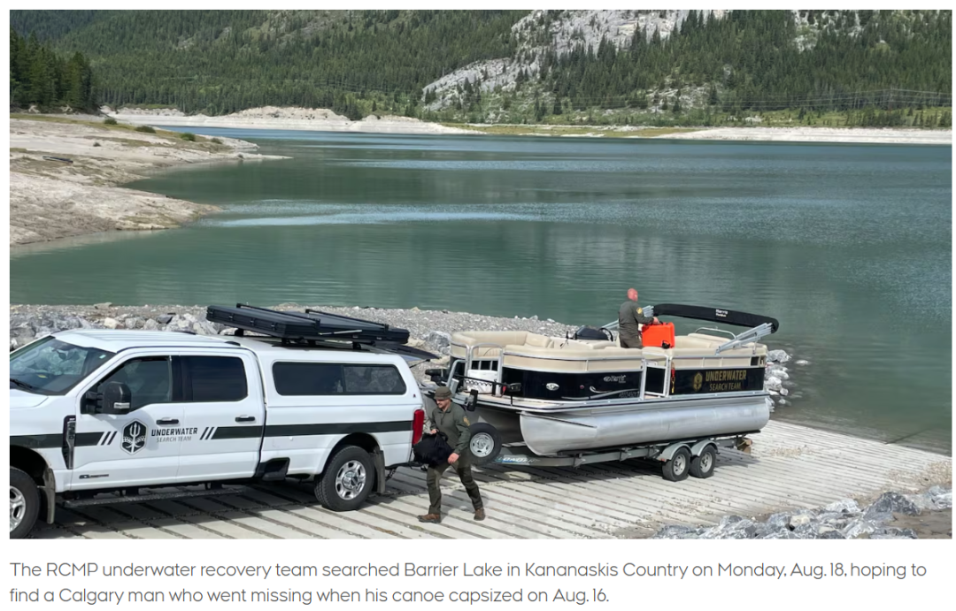 30岁的儿子却始终没有音讯,初步搜救无果后,皇家骑警水下搜救队于周一上午10点30分开始在Barrier Lake展开大规模搜寻行动。