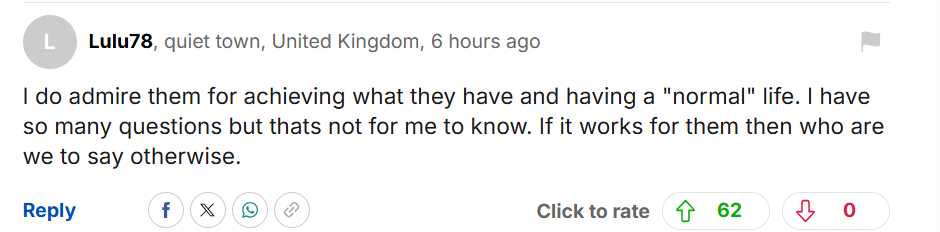 “我真的挺佩服她们,佩服她们获得的这些成就,也佩服她们敢于拥有一份 “平凡” 的生活。虽然我脑子里还有好多问号,但那些事根本不应该我来操心。如果现在这样的生活,她们自己觉得挺合适,那我们有什么资格在这说三道四呢。”