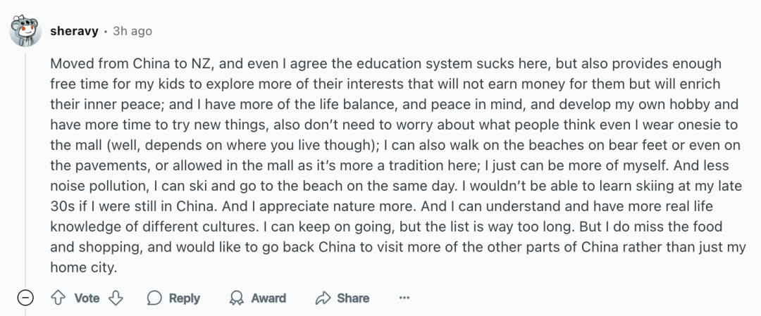 “从中国搬到新西兰,即使我也同意这里的教育体系很烂,但它也给了我的孩子们足够的空闲时间去探索更多他们感兴趣的东西。”