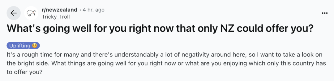 “此刻,有哪些只有新西兰才有的东西正在让你感到开心或享受?”