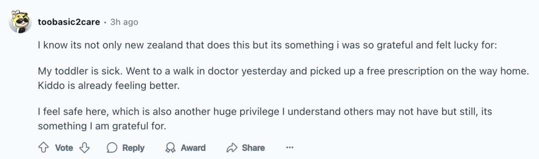 关于免费的公共医疗,有网友直言,虽然这不仅仅是新西兰独有的,但其依然心怀感激。