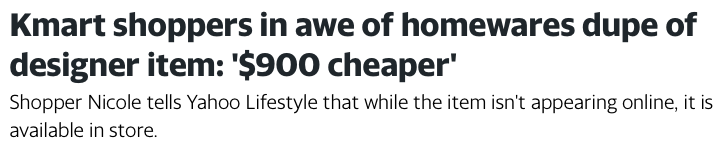 而设计上,Kmart和原版几乎一模一样,都是现代风的“个性单品”。