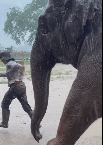 于是Chailert只好亲自出去,在雨中陪大象玩起追逐游戏,就这样一路把它骗了回去。