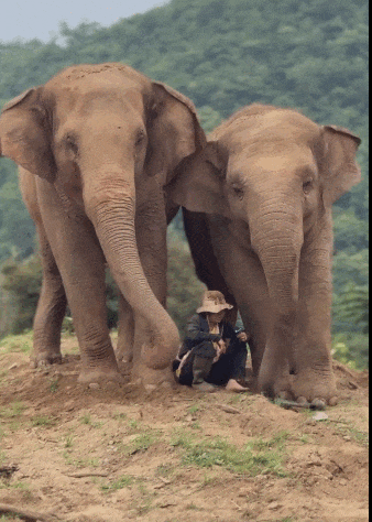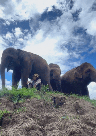 随着时间推移,这些新来的大象会放下戒备,慢慢融入象群,它们会被同伴们接受。Chailert说当大象的耳朵开始扇动,尾巴开始旋转时,就意味着它们很高兴。