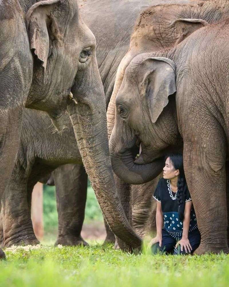 在Chailert分享的影像里,从来没有什么惊心动魄的画面,只有她和大象们静静地待在一起,