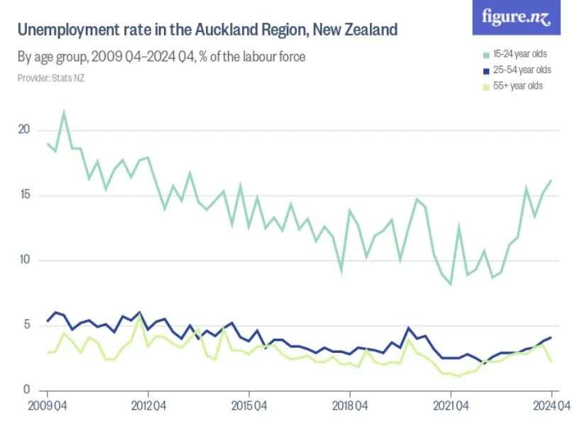 城市地区:奥克兰和惠灵顿等城市面临低迷的消费者信心和房地产市场收缩,房价分别比2022年峰值下跌20%和30%,奥克兰失业率高达6.1%(远高于全国的5.2%)。