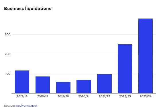 这是令人咋舌的新西兰企业清盘数量变化图(2018-2024):