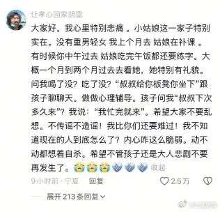 收藏胡雷否认去世女孩遭虐待、家里重男轻女,称女孩成绩好,只是一时想不开,女孩家人:家里爷爷奶奶不需要捐助