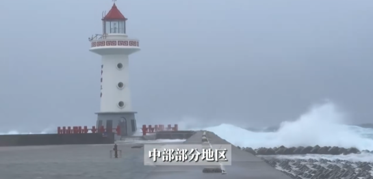 三亚40年最强台风“剑鱼”登陆在即,海边掀起大浪,溅水直逼灯塔塔顶。图源:掌闻视讯