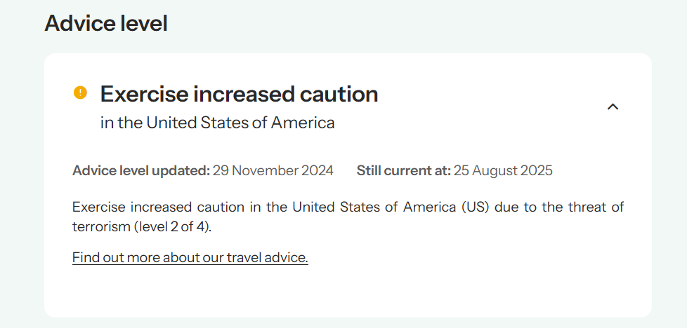 今年5月,新西兰外交部(MFAT)对美国旅行建议进行了更新,这是自2023年以来首次全面审查。