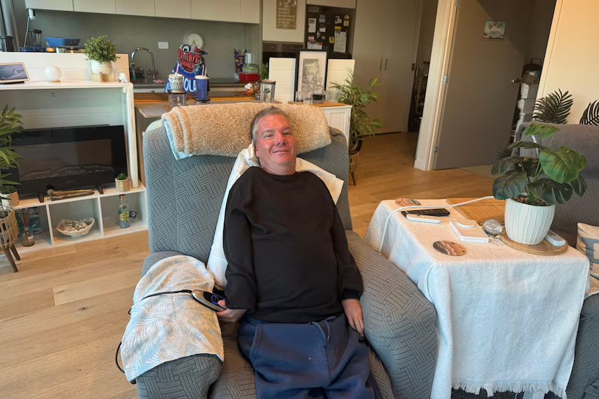 现在,他已经将公寓打造成自己的家,随处可见海滩纪念品、威士忌酒瓶和调料架等温馨装饰。公寓配有自动门、窗帘和灯光,定制浴室和适合轮椅高度的工作台。由于这些改变,他现在对支持工人的依赖减少了。