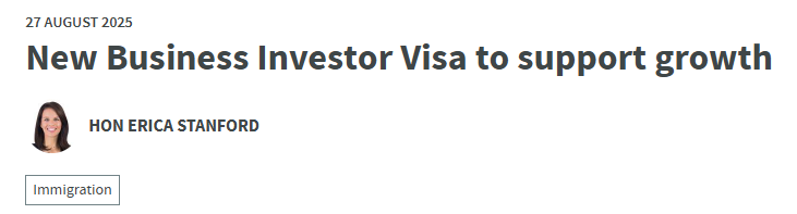 就在今早(8月27日),新西兰移民局宣布:推出新的商务投资签证!(Business Investor Visa, BIV)